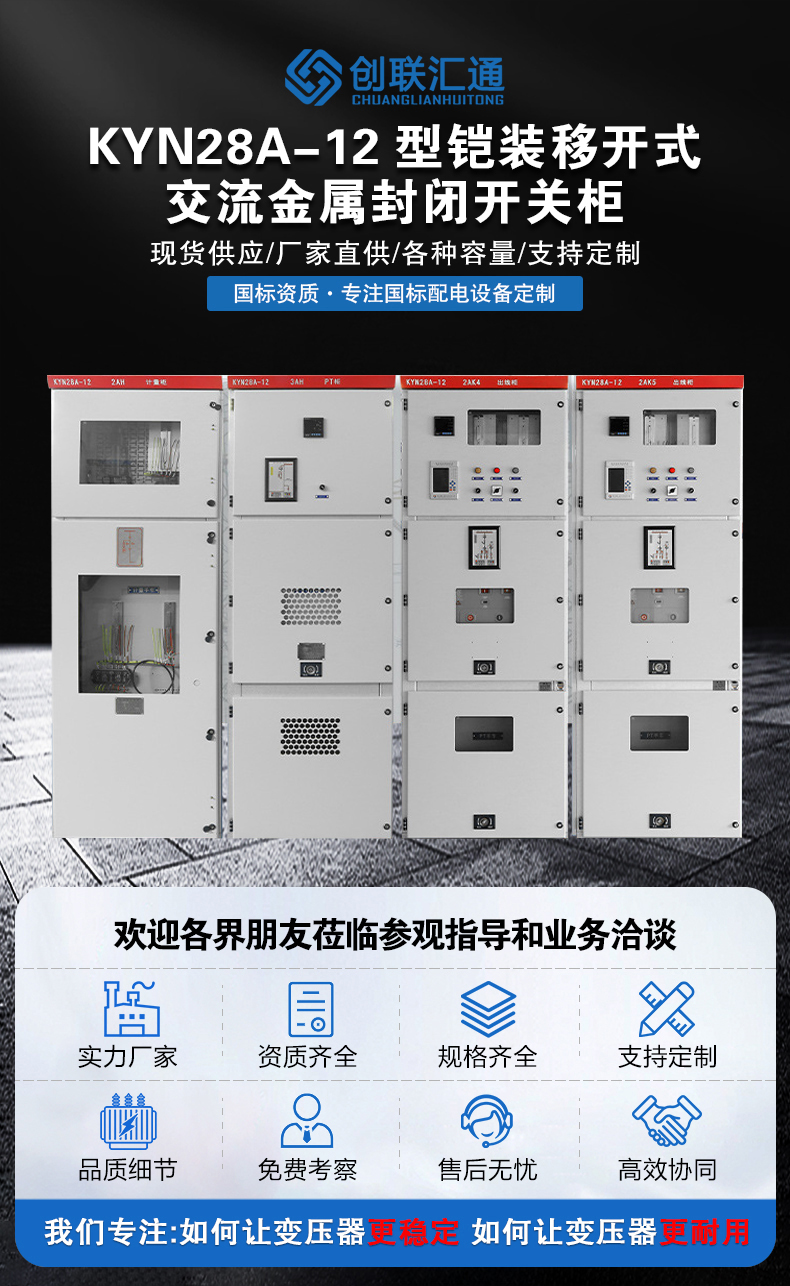 KYN28A-24型戶內(nèi)金屬鎧裝中置式開關(guān)設(shè)備系13.8~20kV三相交流50Hz單母線及單母線分段系統(tǒng)的成套配電裝置。主要用于發(fā)電廠、中小型發(fā)電機(jī)送電、工礦企事業(yè)配電以及電業(yè)系統(tǒng)的二次變電所的受電、送電等。實(shí)行控制保護(hù)、監(jiān)測(cè)之用。